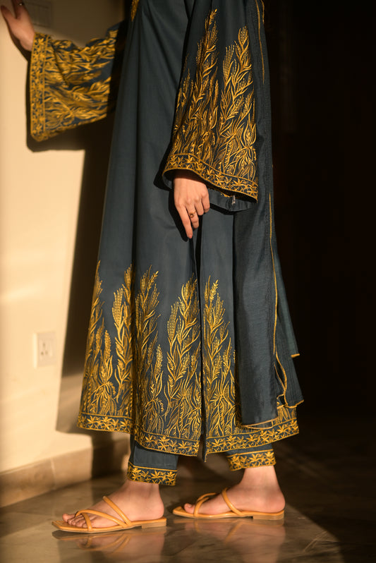SELENE - LAWN GREEN AND RUST 3 Piece Embroidered (AM030)